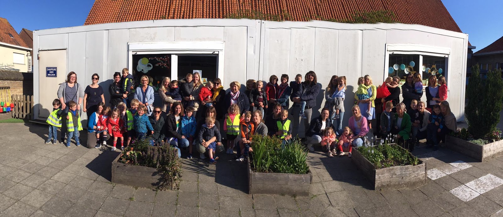 Om 8u30 stonden we de mama's en kleuters op te wachten op de speelplaats,